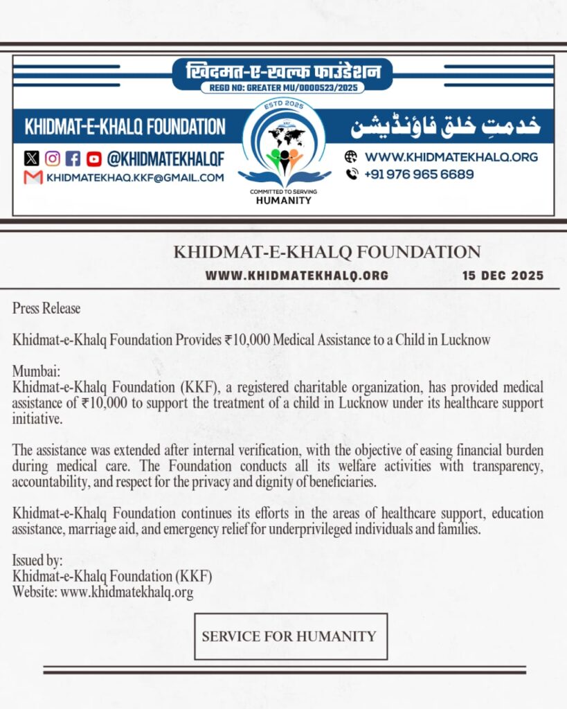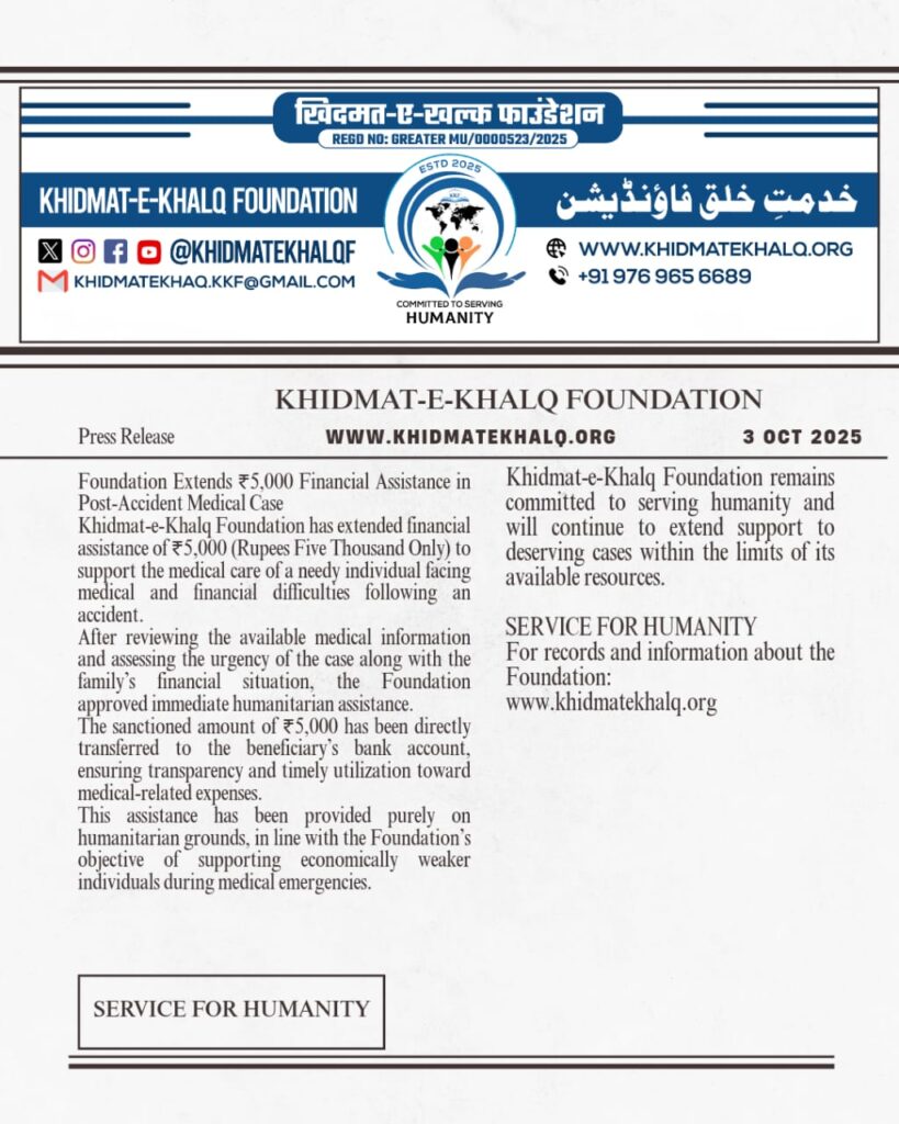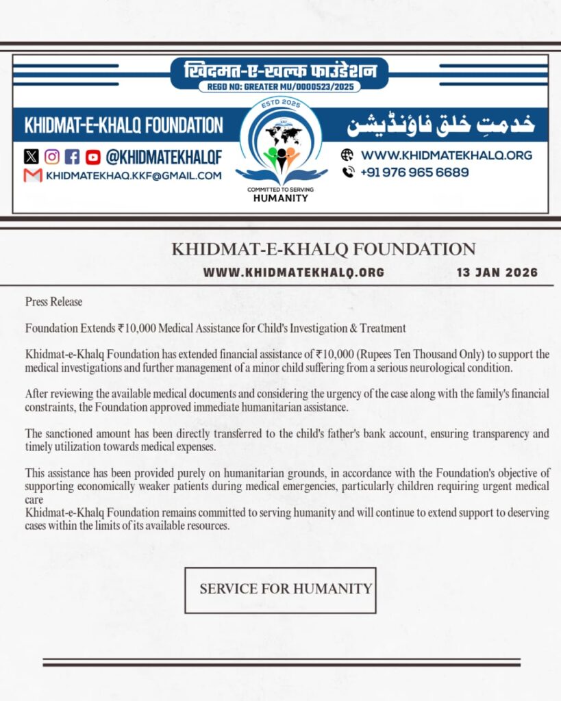 All donations to Khidmat-e-Khalq Foundation are accepted only through official bank accounts or authorized UPI.